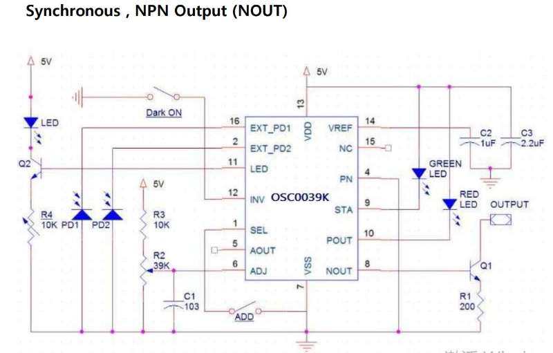 •OSC0039K是专门为具有外部光电二极管作为用户应用的光学传感器设计的,分别为EXT_PD1和PD2。输出可以通过增减PD信号作为SEL引脚的控制功能来选择。